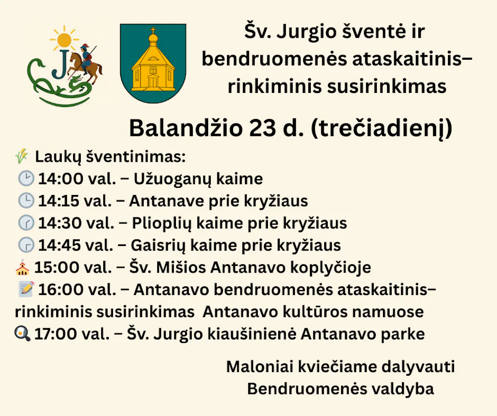 📝 16:00 val. – Antanavo bendruomenės ataskaitinis–rinkiminis susirinkimas Antanavo kultūros namuose